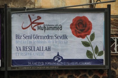 Diyarbakır’ın Yenişehir İlçe Belediyesi’nin geçtiğimiz günlerde kentteki billboardlara astığı ve gösterilen tepki sonucu kaldırdığı Hz. Muhammed’e hakaret içerikli afişe, İslami Sivil Toplum Kuruluşları (STK) yine afişle tepki gösterdi. Kentteki İslami STK’lar 50 billboarda Hz. Muhammed’i öven Türkçe ve Kürtçe afişler astırdı.