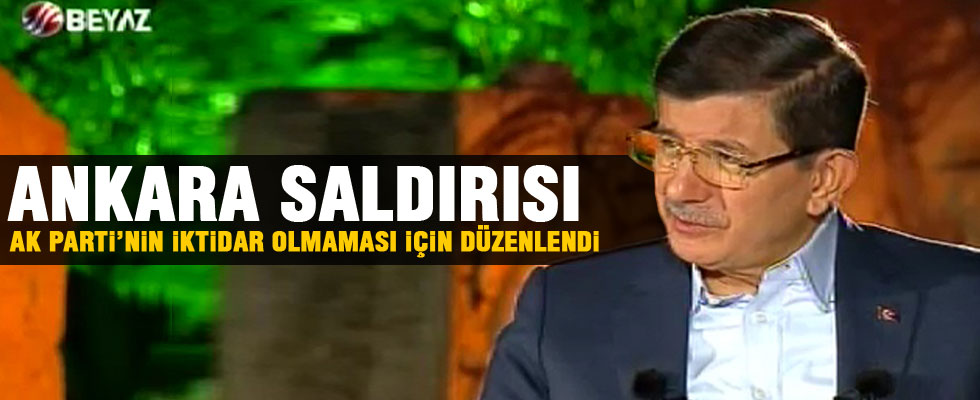 Başbakan Ahmet Davutoğlu, Ankara'da 102 kişinin ölümüyle sonuçlanan terör saldırısının AK Parti'nin iktidar olmaması için düzenlendiğini söyledi.