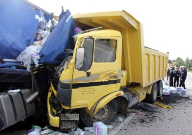 Asfalt yüklü kamyonun TIR’a çarpmasıyla adeta büyük bir facia önlendi.