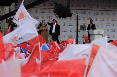 Başbakan Ahmet Davutoğlu daha sonra miting alanında toplanan kalabalığa sesleniyor.