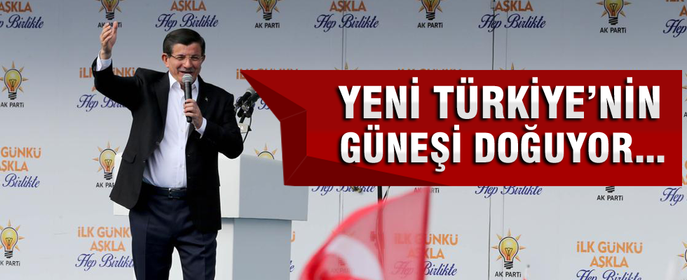 Başbakan Davutoğlu partisinin Ankara mitinginde konuştu. Davutoğlu, "Merak etmeyin Ankara bizi güneşle karşılar dedim. Ankara'dan yeni Türkiye güneşi doğuyor" ifadesini kullandı.