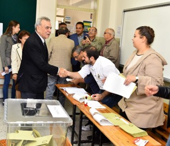 Belediye Başkanı Aziz Kocaoğlu, 1 Kasım 2015 genel seçimi için oyunu Bornova’daki