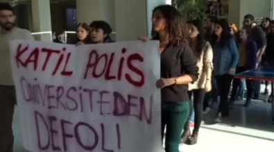 protesto etmek istedi. Üniversitenin içerisinde ellerinde pankart ve dövizlerle yürüyüşe geçen