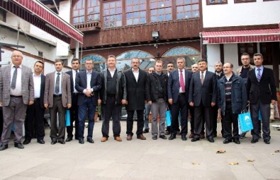 Belediye Başkanı Kamil Saraçoğlu’nun konaktaki buluşmaya yoğun programı sebebiyle katılamadığını dile getiren Ertaş, tur operatörlerine fincan takımı ve kenti tanıtan eserler takdim etti.
