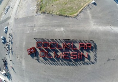 Etkinlikte, Sümer Ortaokulu ve Hacı İbrahim Işık İlkokulu öğrencileri tarafından oluşturulan ’Çocuklar Ölmesin’ kaligrafisi, havadan çekim helikopteri ile görüntülendi.