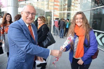 Açıklamadan sonra selfie çekinmeyi de ihmal etmeyen kadınlar, çevredekilere çiçek dağıttı.