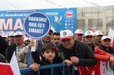 1 Kasım seçimleri öncesince verilen vaatlerin yavaş yavaş yerine getirildiğine dikkat çeken Aksakal,“Ülkemizin ve çalışma hayatımızın en önemli sorunlarından birisi taşeron işçiliktir. Modern köleliğe dönüşen taşeron işçilik kamu ve özel sektörde her geçen gün yayılmaktadır. Çalışma hayatımızın dengelerini bozmakta ekonomik ve sosyal tahribata yol açmaktadır. Hizmet - İş Sendikası kuruluş yıldönümünde startını verdiğimiz sendika seni korur hakkın bize emanet temalı çalışma bugün meyvelerini vermeye başlamıştır. Yaklaşık 2 - 2,5 yıl önce taşeron arkadaşlarımızı üyeliğe başladığımızda kıdem tazminatı, yıllık ücretli izin ve toplu iş sözleşmesinden doğan farkların asıl işveren tarafından ödeneceğine dair yönetmelikler yayınlanmamıştı. Ama çok şükür bugün toplu iş sözleşmemizin önünde her hangi bir engel kalmamıştır. Yıllık ücretli izin ve kıdem tazminatımızla ilgili her hangi bir sorunumuz kalmamıştır. 1 Kasım 2015 tarihinde ki genel seçimler için siyasi partilerin seçim beyannameleri bizim için çok önemlidir. Taşeronlar asgari ücretle ilgi vaatleri takipçisi olacağız. Taşeronla ilgili sorun bugünün sorunu değil yaklaşık 30-40 yıla yakın bir sorunun çözüm arifesindeyiz. Bizim mücadelemiz kamuda çalışan taşeron işçilerin tamamının kadroya alınmasıdır. Çünkü bu sistem bizim çalışma hayatımıza uyan bir sistem değildir. Biz komşusu açken kendisi tok yatan bizden değildir buyuran bir peygamberin ümmetiyiz. Kamuda aynı işi yaptığımız sabahtan aksama kadar beraber çalıştığımız alın teri döktüğümüz işler için birine senin ücretin asgari ücret diğerine de senin ücretin geçinebileceğin bir rakam denmesi maalesef iş barışını ve sosyo ekonomik düzenimizi bozmaktadır. Bu çalışma sistemi komşumuzun aç yatması değil aynı işyerinde aynı işi yaptığımız arkadaşımızın aç kalmasına vesile olmaktadır. Yine peygamber efendimiz (s.a.s) işçinin alın teri kurumadan hakkını verin diye buyurmuştur. Aynı işi yapan arkadaşımızın alın teri karşılığı birine asgari ücret reva görülürken diğerine senin alın terinin karşılığı geçinebileceği bir rakam ödenmesi bizim ne inancımıza ne kültürümüze ne örfümüze ne de adetlerimize uymaktadır. Bu yüzden biz kamuda çalışan taşeron işçilerin tamamına kadro verilmesini istiyoruz ve seçim beyannamelerinde bildirilen kadro vaatlerinin takipçileri olacağız” dedi.