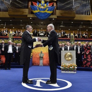 Türk Profesör Aziz Sancar, İsveç’in başkenti Stockholm’de düzenlenen törenle Nobel Kimya Ödülü’nü İsveç Kralı 16’ıncı Gustaf’ın elinden aldı.