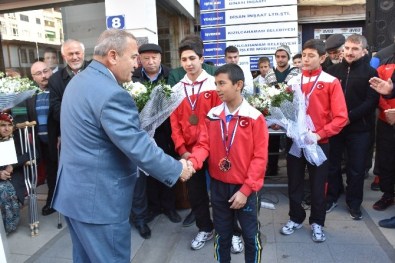 Balkan Şampiyonası’nda şampiyon olan Türk Milli Takımı’nda yer alan Kızılcahamam Belediyesi Güreş Takımı güreşçileri, ilçeye gelişlerinde törenle karşılandı.