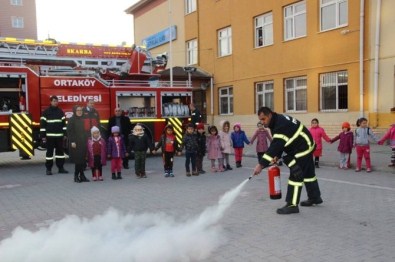 Aksaray’da itfaiye ekipleri tarafından anasınıfı öğrencilerine uygulamalı olarak yangın söndürme ve kurtarma eğitim verildi.