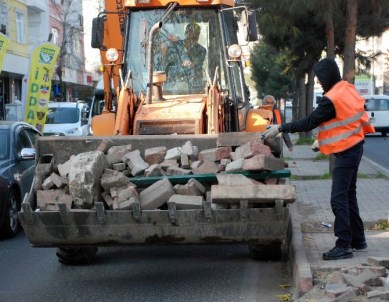Diyarbakır’da, göstericiler tarafından sökülerek tahrip edilen refüjlerdeki taşlar, Karayolları ekipleri tarafından temizlendi.