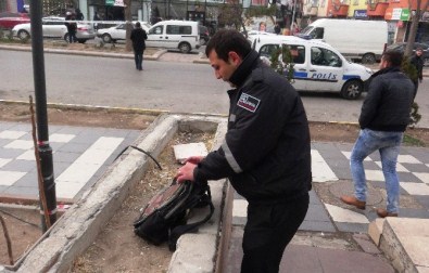 şüpheli çanta çevresine güvenlik şeridi çekti. Polis ekipleri bomba imha uzman ekibine haber verirken, ekibin beklendiği sırada