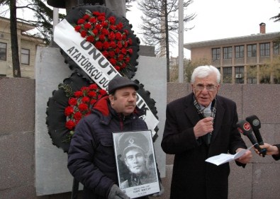 ADD Eskişehir Şube Başkanı Dr. Azmi Kerman, Asteğmen Mustafa Fehmi Kubilay ve arkadaşlarının öldürülmesinin 85’inci yıl dönümünde Valilik önündeki Atatürk heykeli önünde basın açıklaması yaptı.
