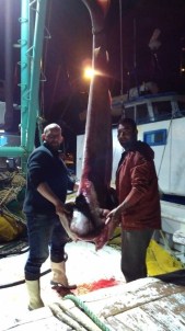 Önceki gece saatlerinde Oğulcan Kaptan teknesi ile balık avına çıkan balıkçılar, Karaada açıklarında ağlarını topladıkları sırada dev bir