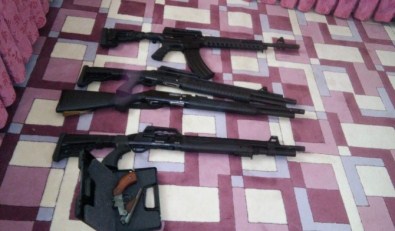 Polis zanlıları gözaltına alırken, tüfeklere ve tabancaya el koydu.
