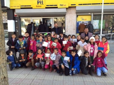 Öğrencileri PTT Müdürü Nihat Atılgan, PTT İşletme Şefi ve Hamit Akkuş ve PTT Personeli Aydın Mağın karşıladı. PTT Müdürü Atılgandan bilgi alan öğrenciler yılbaşı nedeniyle akraba ve arkadaşlarına yılbaşı mesajı yazarak, tebrik kartı gönderdi.