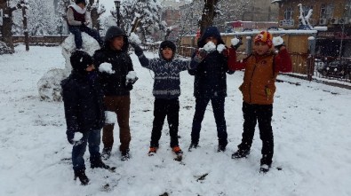 Öte yandan, ilçedeki çocuklar hem karın hem de tatilin tadının kartopu oynayıp, kardan adam yaparak çıkardı.