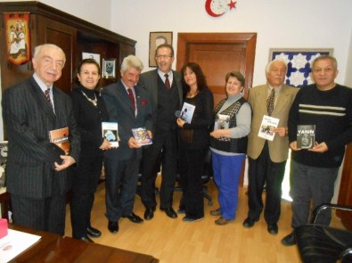 Eskişehir Kültür Sanat Derneği (ESKÜDER) Başkanı Gazi Durusu ile dernek üyeleri şairler ve yazarlar, Eskişehir Vali Yardımcısı Ömer Faruk Günay’ı makamında ziyaret ederek kendi yazdıkları şiir kitaplarını kendi elleriyle imzalayarak takdim ettiler.
