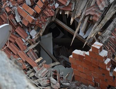 3 Katlı Apartmanın Çatısı Tek Katlı Evin Üstüne Göçtü, Evde Uyuyan 4 Kişi Canını Zor Kurtardı