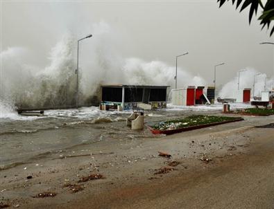 Özellikle Ege ve Marmara bölgelerinde 2 gündür etkili olan ve hızı saatte 120 kilometreye ulaşan lodos, Erdek Balıkçı Barınağı’ndaki 4 tekneyi parçalayarak batırdı. Batı yönünden esen lodos, bugün öğlen saatlerinden itibaren yön değiştirerek güneyden esmeye başlayınca, ilçenin Cura sahilindeki çay bahçeleri ve büfeler sular altında kaldı. Bazı büfeler, dev dalgaların etkisiyle sürüklenerek parçalandı. Sahil şeridindeki küçük iskeleler yerlerinden sökülürken, banklar parçalandı. Metrelerce yüksekliğe ulaşan dev dalgalar, sahil yürüyüş yolundaki zemin döşemelerini söktü ve taşan deniz suları sahildeki tüm yolları sulara gömdü.