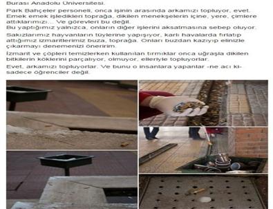 Özay, ayrıca başlattığı kampanya kapsamında sosyal medyada açtığı sayfada, Anadolu Üniversitesi Park ve Bahçeler Müdürlüğü'ne bağlı çalışan işçilerin görevlerinin izmarit toplamak olmadığına da dikkat çekiyor.