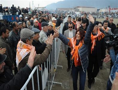 Söke 2. Beyaz Altın Deve Güreşi alanına gelen Başkan Çerçioğlu, vatandaşların tezahüratları eşliğinde arenayı bir baştan diğer başa yürüyerek Sökelileri selamladı. Başkan Çerçioğlu, güreş alanında halkı selamlarken vatandaşlar sevgilerini göstermek için Başkan Çerçioğlu’na adeta kırmızı karanfil yağmuruna tuttu. Binlerce kişinin izlediği deve güreşinde, Başkan Çerçioğlu sevgi gösterileriyle alandan ayrıldı.