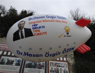 TBMM Strateji Bürosu Sorumluluğu ve ABD Ülke Uzmanlığı görevlerinden istifa ederek AK Parti Zonguldak Milletvekili Aday Adayı olan Dr. Hasan Özen, seçim çalışmaları kapsamında zeplin uçurdu.