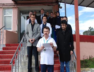 Çanakkale’nin Biga ilçesinde, Sağlık Sen üyeleri, hastane bahçesinde basın açıklaması yaptı.