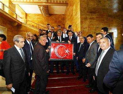 Şanlıurfa’nın Büyükşehir olmasıyla mağdur duruma düşen Köylere Hizmet Götürme Birliği personelleri, sorunun giderilmesine destek veren Başbakan Ahmet Davutoğlu’na, Osmanlıca işlemeli Türk bayrağı tablosu hediye etti. Başbakan Davutoğlu’na, Şanlıurfa milletvekilleri ile birlikte tabloyu veren personel Müslüm Dalda, “Aylardır mağdur edildik ama sonunda bizim de mağduriyetimiz giderildi. Mağduriyetimizin giderilmesinde başta Başbakanımız Sayın Ahmet Davutoğlu’na, Bakanımız Sayın Faruk Çelik’e, milletvekillerimize ve emek veren herkese ayrı ayrı teşekkür ederiz” dedi.