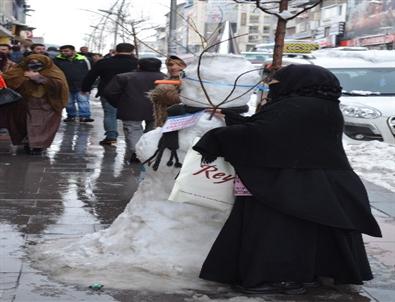 Erzurum’un en işlek caddelerinden biri olan Cumhuriyet Caddesi’nde bir esnaf tarafından yapılan kardan adam ve üzerindeki asılı “fotoğraf çektirmek beleş” yazısı yoldan geçen vatandaşların ilgi odağı haline geldi.