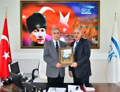 Van Esnaf ve Sanatkarlar Odaları Birliği (VESOB) Yönetim Kurulu Başkanı Faruk Alpaslan, Sosyal Güvenlik Kurumu (SGK) Van İl Müdürü Mehmet Yüce’yi makamında ziyaret ederek, yaptığı başarılı çalışmalar nedeniyle plaket verdi.