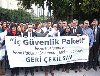 Adana'da, TBMM gündemine gelen ve polisin yetkilerinin artırılacak olması nedeniyle tartışmalara neden olan İç Güvenlik Paketi protesto edildi.