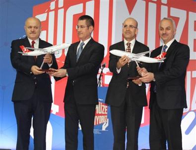 THY’nin taşıdığı transit yolcusundaki artışın çok ciddi oranlara ulaştığına dikkat çeken Topçu, “2010’da THY’nin toplam yolcu sayısı 10 milyon iken, bugün sadece taşıdığı transit yolcu sayısı 12 milyon. Artık İstanbul önemli bir transit merkezi haline geliyor. Dünya hava trafiğinin yüzde 66’sının üzerimizden geçtiği bir noktada biz hava trafiğinden binde 3 oranında pay alıyorduk. Ama bugün dünya sivil havacılık trafiğinden aldığımız pay yüzde 2’ye yükselmiştir. Türkiye’nin 2023 hedeflerine paralel olarak biz de THY olarak bütün örgütümüzün yapısını, donanımlarımızı planladık, uçak siparişlerimizi verdik. 2023 yılında 450’yi aşkın bir filoya sahip olmak. 100 milyonu aşkın yolcu taşımak, 3 milyar dolar kargo geliri elde etmek, 1.5 milyar dolar bakım-onarımdan pay almaktır” dedi