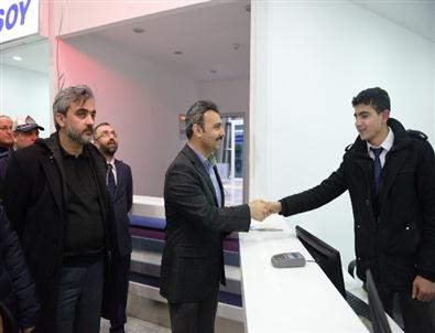 Belediye Başkanı Muzaffer Külcü, yeni Şehirlerarası Otobüs Terminaline gece 00.00 saatlerinde giriş yapan Ankara-Trabzon seferini yapan otobüsü terminalde karşıladı.