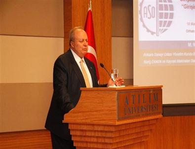 Atılım Üniversitesi Orhan Zaim Konferans Salonu’nda gerçekleşen konferansı, Atılım Üniversitesi Rektörü Prof. Dr. Abdurrahim Özgenoğlu, İşletme Fakültesi Dekanı Prof. Dr. Hasan Ünal, öğretim görevlileri ve çok sayıda öğrenci takip etti.Konferansta öğrencilere seslenen ASO Başkanı Nurettin Özdebir, sanayici olarak günümüz iş dünyasının gençlerden neler beklediğini anlattı. Dünya ekonomisinde hızlı gelişmelerin yaşandığı küresel bir rekabet ortamında bulunduklarını belirten Özdebir, “Sanayicilerimiz, artık küresel ölçekte siparişleri hızla karşılamak için müşteri ilişkilerini derinleştirmek, bunun için de bilişim teknolojilerindeki gelişmelerden yararlanmak zorundadırlar” dedi.