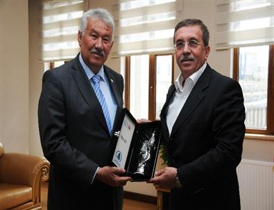 Ziyaretin sonunda iki belediye başkanı da birbirlerine hediye takdim etti.