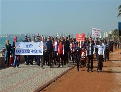 Bu haftada İçel İdmanyurdu Meydanı’nda başlayan yürüyüş, Suphi Öner Öğretmenevi karşısına git gel yapılarak son buldu. Yürüyüşe, İçel Halk Sağlığı Müdürü Dr. Aytekin Kemik, İçel İl Sağlık Müdürü Doç. Dr. Mustafa Kemal Başaralı, müdür yardımcıları, Halk Sağlığı Müdürlüğü Şube Müdürleri, Toplum Sağlığı Merkezi sorumlu hekimleri, Halk Sağlığı Müdürlüğü ve Toplum Sağlığı Merkezi personeli, diğer kamu kurum kuruluşlarının personeli ile vatandaşlar katıldı.