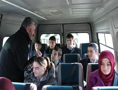 Öğrencilere emniyet kemerinin faydalarını anlatan Atlı, bundan sonra araca biner binmez kemerlerini takacakları ve evlerine ulaşıncaya kadar çıkartmayacakları konusunda her bir öğrenciden söz aldı.