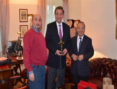 Çalışma programı çerçevesinde Türkiye’nin İsveç Büyükelçiliğini de ziyaret eden Giresun Heyeti, büyükelçi Kaya Türkmen’i makamında ziyaret etti. Giresun Gazeteciler Derneği Başkanı Bekir Bayram, Büyükelçi Türkmen’e “Fındık başımızın tacı” heykelini hediye etti. Bayram, Türkmen’e proje hakkındaki çalışmaları anlatarak detaylı bilgi verdi. Ziyarette Büyükelçilik Basın Ataşesi Arif Gülen de hazır bulundu.
