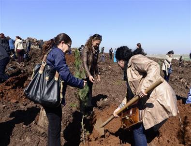 Dünya Kadın Yürüyüşü kapsamında Diyarbakır’a gelen çok sayıda kadın, İmar Planı’nda Kent Ormanı olarak planlanan Talaytepe’yi ağaçlandırmak amacıyla 500 adet fidan dikti.