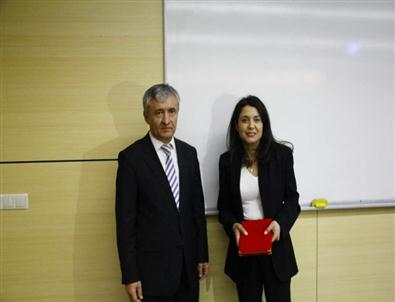 Konferansın sonunda Burçin Karababa’ya, SAÜ Çevre Mühendisliği Bölüm Başkanı Prof. Dr. Saim Özdemir tarafından plaket takdim edildi.