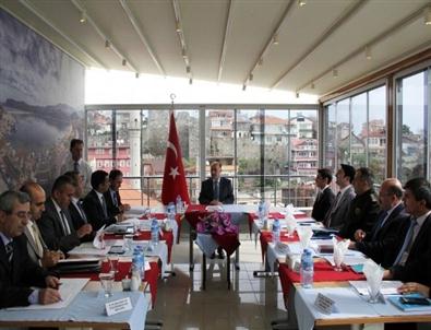 Amasra Öğretmenevinde toplantı salonunda Bartın Valisi Seyfettin Azizoğlu’nun başkanlığında yapılan toplantıda Vali Yardımcısı Osman Altın, Amasra Kaymakamı Kadir Taner Eser, Ulus Kaymakamı Selçuk Şakar, Kurucaşile Kaymakamı Selim Çomaklı, İl Jandarma Komutanı J.Alb. Tekin Aktemur, İl Emniyet Müdürü İsa Aydoğdu, İl Özel İdare Genel Sekreteri Vekili Metin Çetin ve ilgili kurum müdürleri hazır bulundu. Bartın’daki KÖYDES çalışmalarının değerlendirildiği toplantıda ilçelerin sorunları ve kamu yatırımları da masaya yatırıldı.Amasra ve Kurucaşile İlçelerine 10 bin zeytin fidanı dağıtımının yapılması ile Tarlaağzı Balıkçı Barınağı Atık Kabul Tesisi projesi hakkında gerekli çalışmaların başlatılmasının kararlaştırıldığı toplantıda konuşan Vali Seyfettin Azizoğlu, kamu kurum ve kuruluşları arasındaki koordinasyonun artırılması, kamu yatırımlarının takibi ile KÖYDES çalışmalarının hızlandırılarak aynı hassasiyetle devam edilmesi gerektiğini ifade etti.