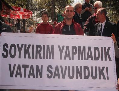 Teyfikbey Caddesi üzerinde bulunan parti binasında toplanan partililer, yürüyerek aynı cadde üzerinde bulunan Kültür Sitesi Aile Çay Bahçesi’nin önüne geldi. Burada açıklama yapan Vatan Partisi Bilecik İl Yöneticisi Eren Güngör, Ermeni soykırımı Emperyalist bir yalan olduğunu ve Papa’nın fetvasından sonra Avrupa Parlamentosu'nun da Haçlı Seferine katıldığını belirtti.
