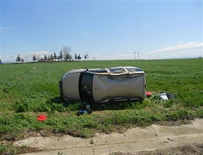 Tekirdağ'ın Malkara ilçesinde yoldan çıkan otomobil, taklalar atarak buğday tarlasına uçtu.