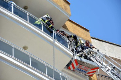 Olay yerine gelen Aydın Büyükşehir Belediyesi itfaiye ekipleri, merdivenle balkona çıkarak yangına müdahale etti.