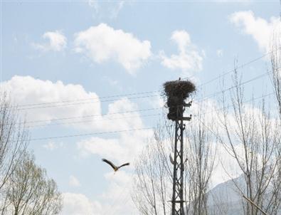 Baharın müjdecisi olarak görülen leylekler, Elbistan’ın değişik bölgelerindeki yuvalarına gelmeye başladı.