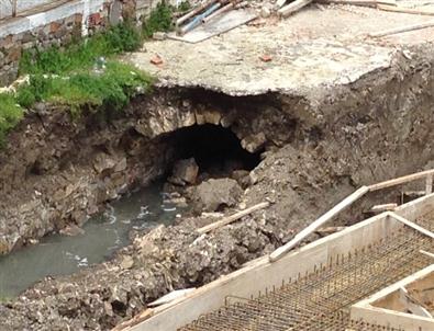 Kazı sırasında bir bölümü çöken kanaldan kanalizasyon akması dikkat çekerken, inşaat durduruldu. Anıtlar Yüksek Kurulu tarafından yapılacak inceleme sonrasında inşaatın devam edip etmemesine ilişkin karar verilecek.