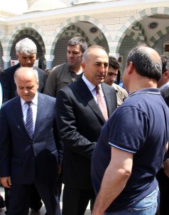 Cami avlusunda vatandaşlarla sohbet edip fotoğraf çektiren Bakan Çavuşoğlu, caminin karşısındaki bir kahvehanede, İçel Valisi Özdemir Çakacak, AK Parti İl Başkanı İsmail Taşpınar ve protokol üyeleriyle çay içip, vatandaşlarla sohbet etti.