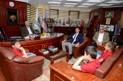 Kumluca'da Karabük İlkokulu öğrencileri, öğretmenleriyle Kumluca Belediye Başkanı Hüsamettin Çetinkaya'yı ziyaret etti.