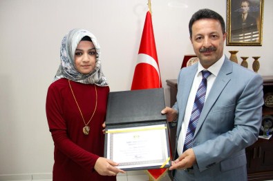 Siirt Üniversitesi (SİÜ) Rektörü Prof. Dr. Murat Erman, Gençlerden Ecdada Mektup Yarışması'nda Türkiye birincisi olan Kübra Erbek'i ödüllendirdi.